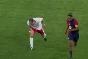 太凶残了小罗踩单车+牛尾巴过人晃得对面老头闪到腰