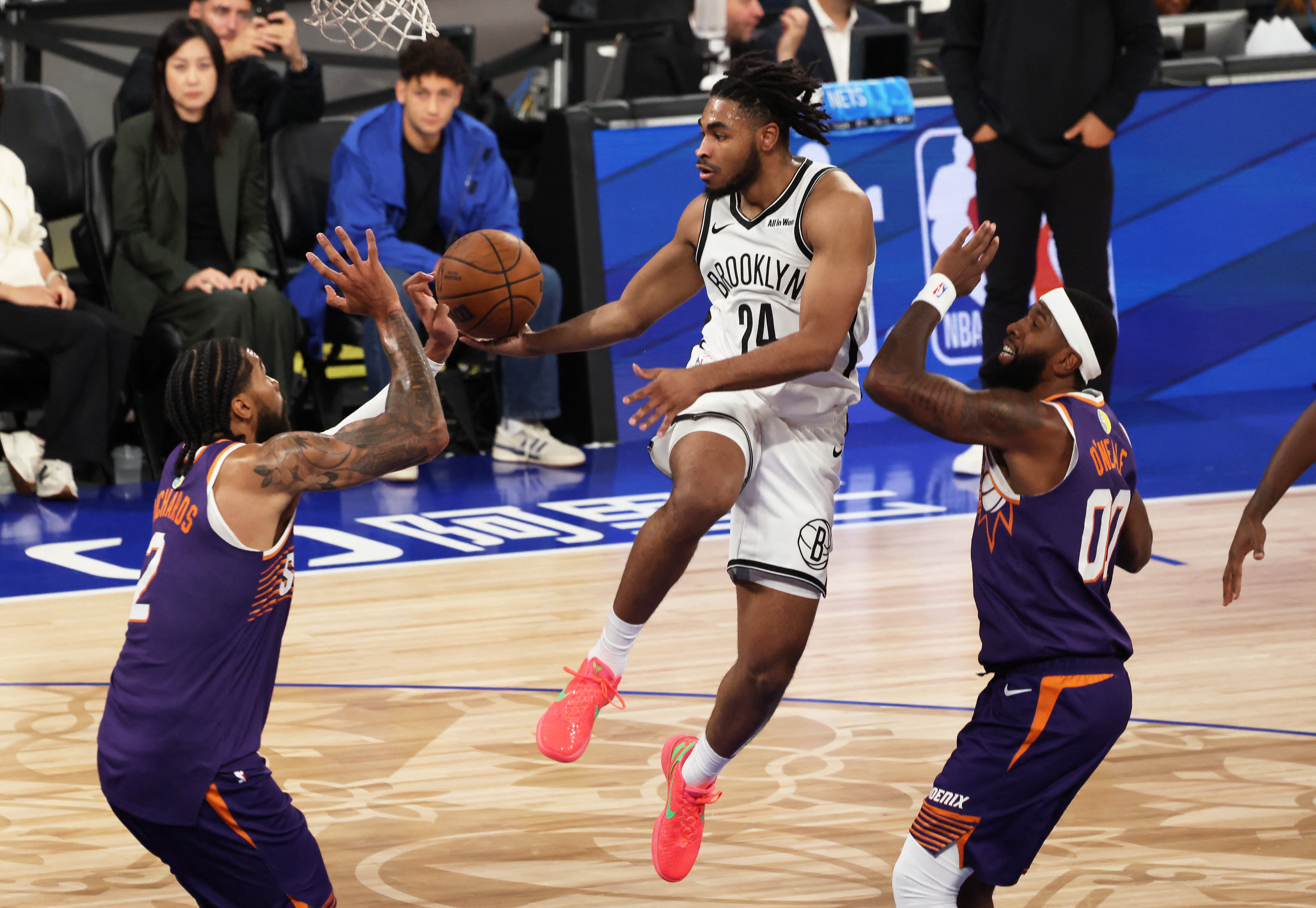 10月12日讯 NBA季前赛,篮网半场49-51落后太阳。