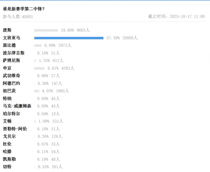 『吧友评选』NBA新赛季第二中锋:文班亚马