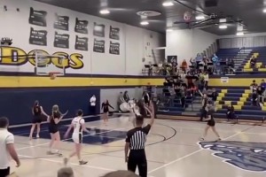 男孩投篮一直没进,突发奇想跟暗恋的女孩打赌