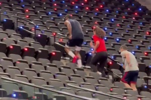 他训练太努力了!哈登带着女助教一起爬楼梯