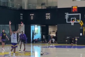 看来钢哥恢复得不错啊!斯玛特躺地上扔进中圈三分!