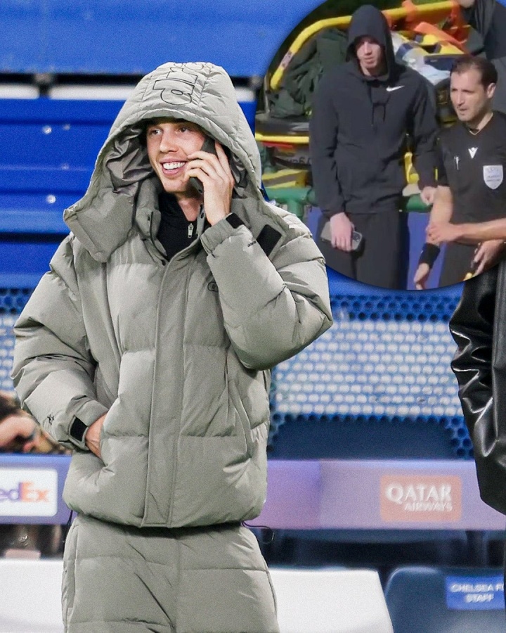 10月01日讯 欧冠联赛阶段切尔西1-0击败本菲卡,帕尔默现身斯坦福桥球场,穿着大棉衣+棉鞋看比赛。