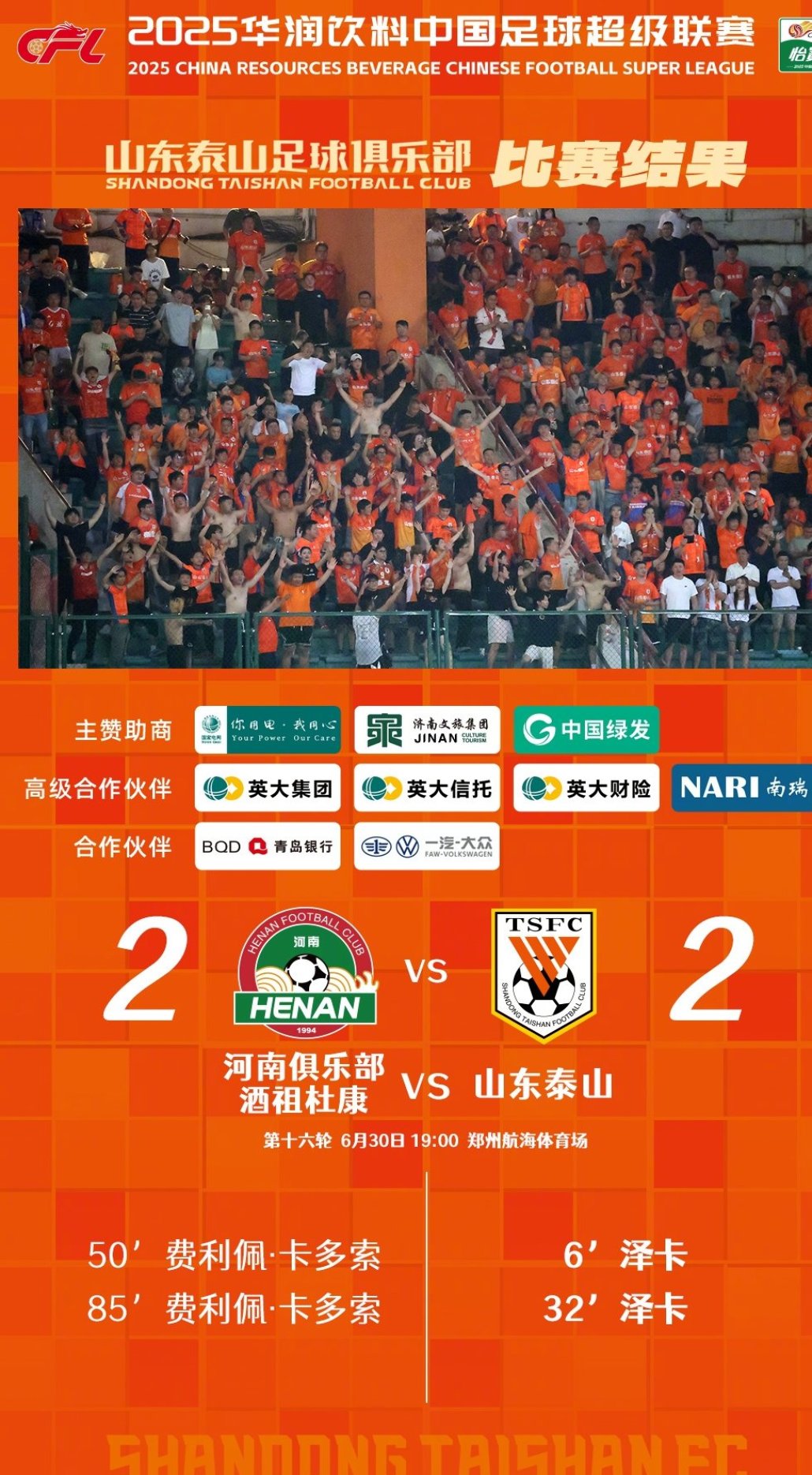 感谢所有远赴客场冒雨支持球队的球迷朋友们。球队在这场比赛中跌宕起伏,没有展现出应有的技战术水平。球队会利用间歇期强化训练,重整旗鼓,坚定信心,激发斗志,迎接下半程的联赛。 ​​​